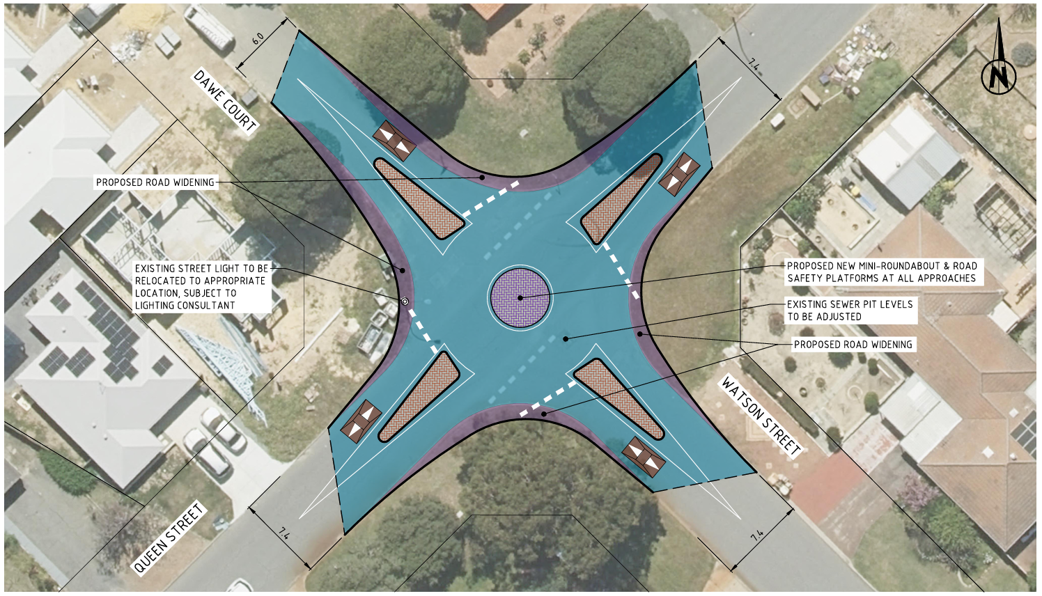 Treatment type: Mini-roundabout with speed humps on all approaches.